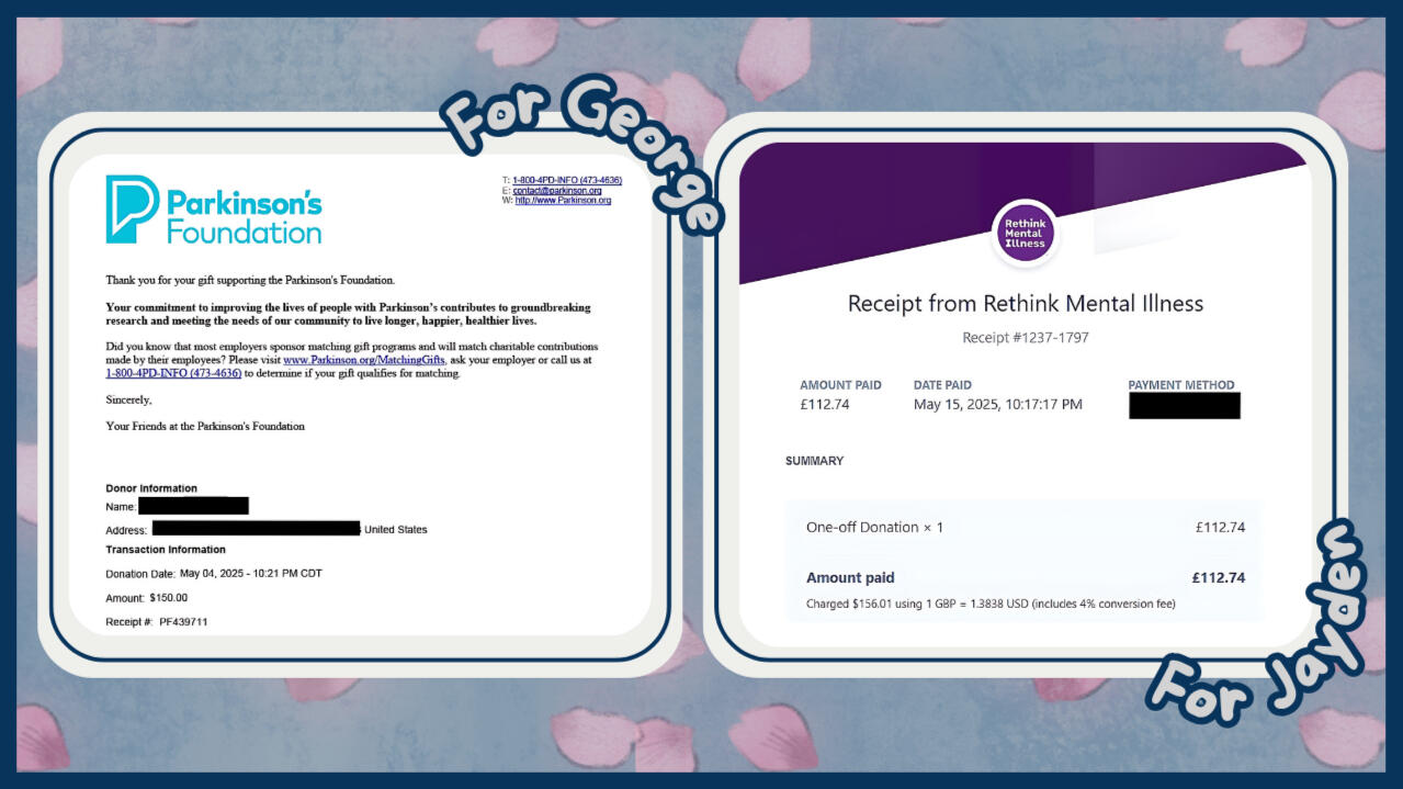 • $150.00 to the UK Nonprofit Rethink Mental Illness for Jayden Revri's birthday.